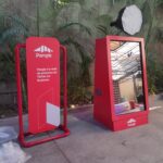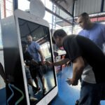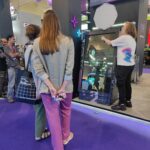 O Totem Espelho Mágico Espelhomatic funciona como um espelho interativo que faz fotos de corpo inteiro (na vertical) e possibilita a pessoa assinar ou desenhar na foto, personalizando a imagem diretamente na tela e ainda imprimir a foto na hora.