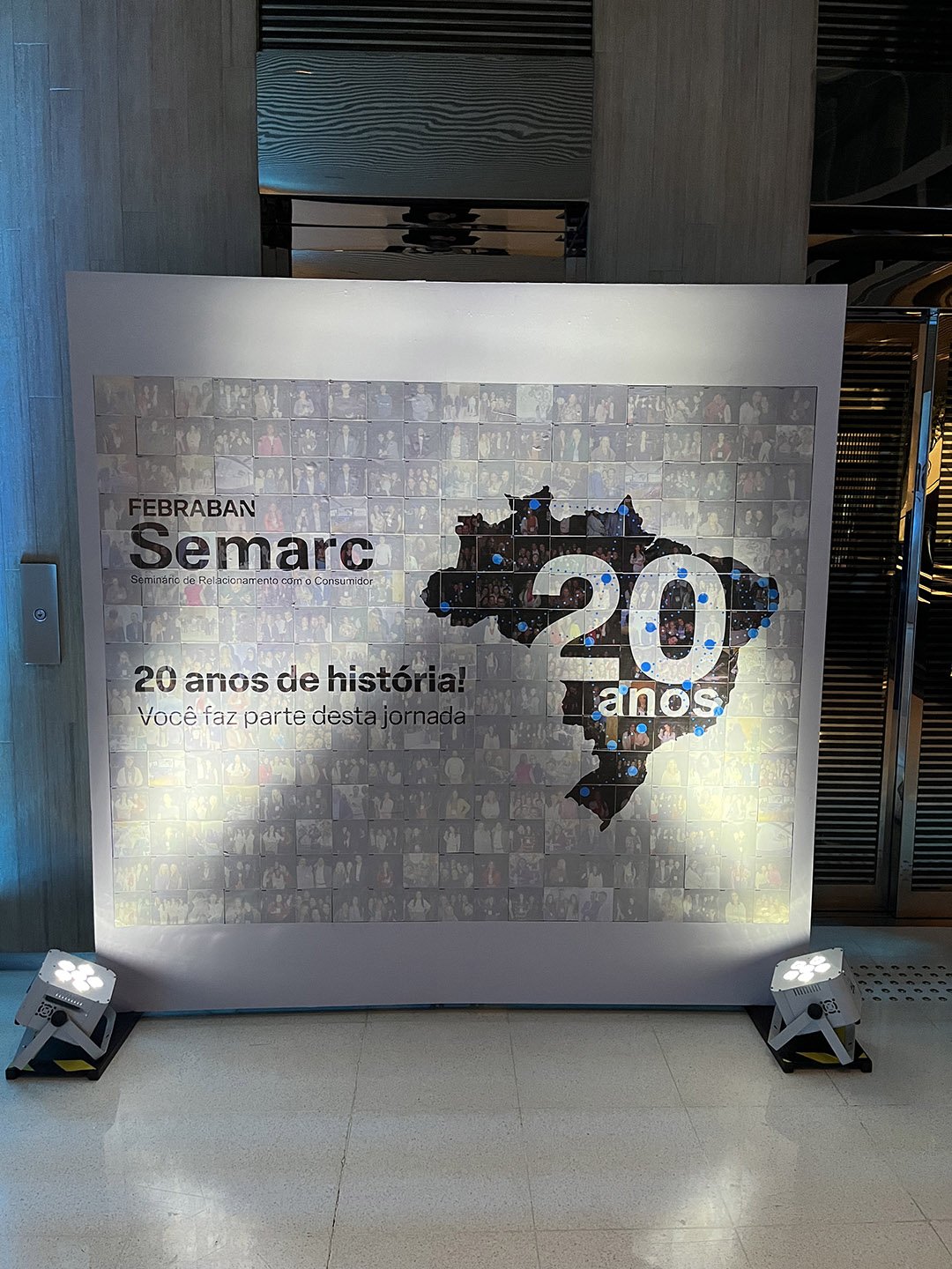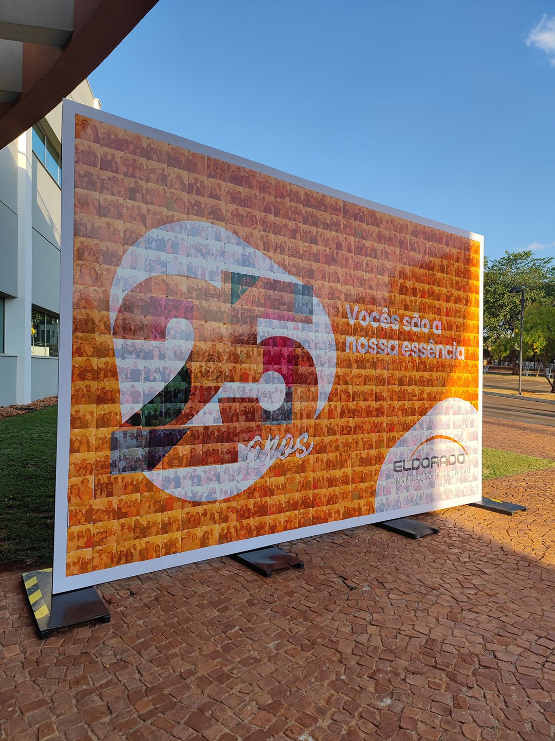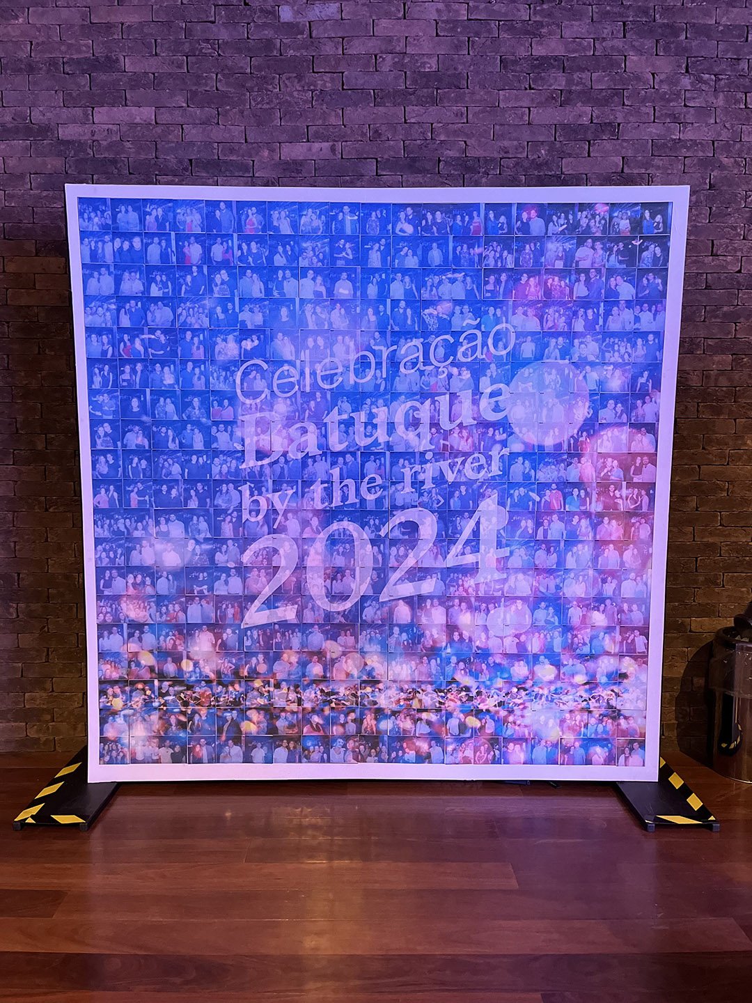 Modelo médio formado por uma placa de 2x2 metros. A parte da imagem do painel tem 120X180cm e 12x18 fotos, contendo 216 fotos no total. Ficha Técnica: Painel: 200x200cm em PS 2mm. Formato da foto: 10x10cm em bopp adesivo. Tempo mínimo de evento: 3 horas. Público ideal: de 150 a 300 pessoas.