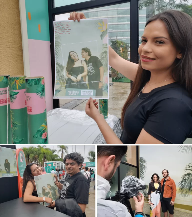 Internet no local (se usar AI e compartilhamento por Whatsapp). Para usar a próprio ambiente como fundo e o compartilhamento via QR code, não há necessidade de internet no local do evento.